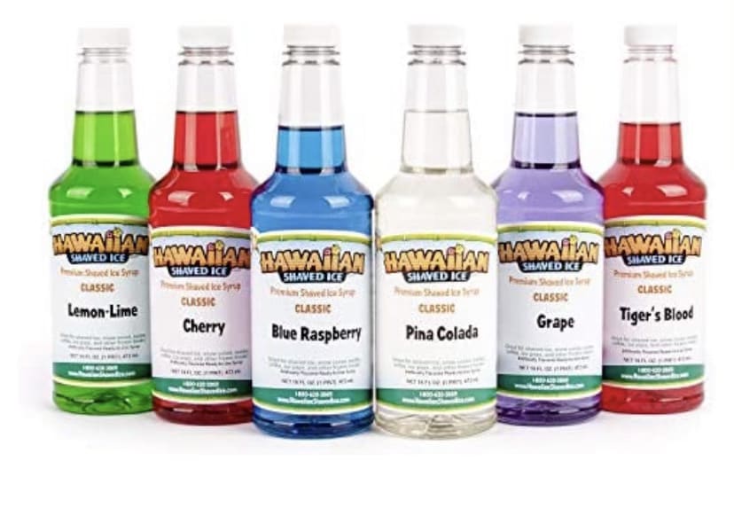 Our snow cone concession comes with 2 flavored syrups of your choice, 24 snow cone cups, and 24 spoon straws.