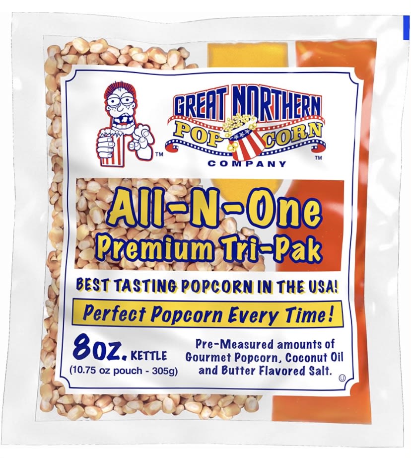 Our popcorn concession comes complete with 3 popcorn kits, 2 popcorn seasonings, and 24 popcorn bags.