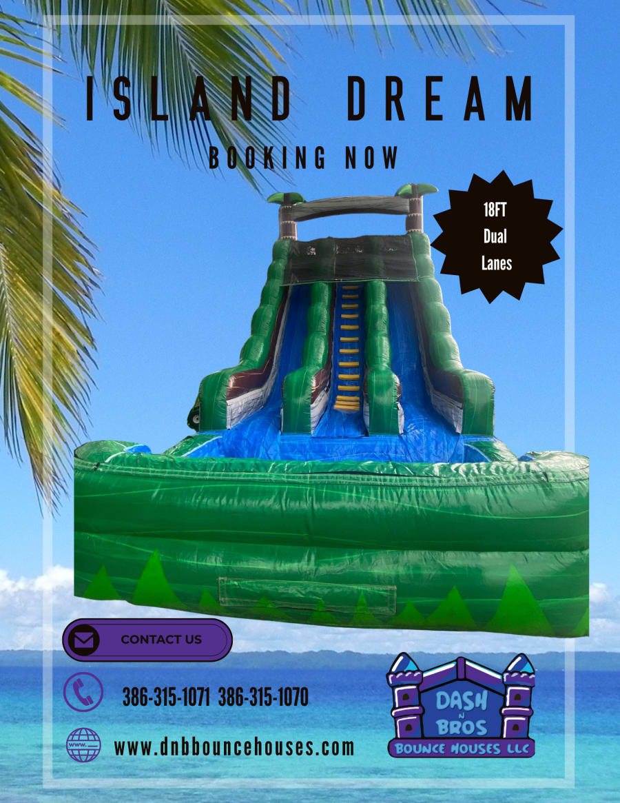 Bring the island fun to your event with our 18 FT Island Dream Waterslide. It's the perfect addition to any event where partygoers young and old can cool off while having ultimate fun!